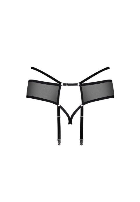 Otwarty pas do pończoch. Zwierzęcy, aksamitny wzór - wyjątkowy wygląd. Ozdobne paseczki z przodu i z tyłu -podkreślona sylwetka. Prześwitująca siateczka - kusi i zniewala. Regulowane paski do pończoch oraz paski w kroku. Miękki i elastyczny materiał.