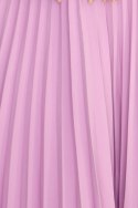 Lila - elegancka plisowana sukienka midi w kolorze wrzosu to idealny wybór dla kobiet ceniących styl i wygodę. Uszyta z lekkiego, plisowanego materiału, pięknie układa się na sylwetce, podkreślając jej atuty. Pasek, który można zawiązać w kokardę, dodaje romantycznego akcentu i podkreśla talię. Krótki rękawek zapewnia swobodę ruchów, a kryty zamek z tyłu gwarantuje idealne dopasowanie. Doskonała na eleganckie wyjścia, letnie przyjęcia i rodzinne uroczystości. Produkt polski. Marka Numoco.