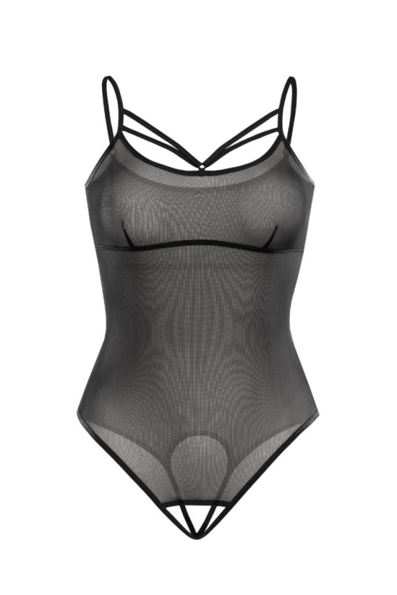 Przedstawiamy eleganckie i zmysłowe body z delikatnej, transparentnej siatki w głębokim odcieniu czerni. To niezwykle uwodzicielskie i wyjątkowo stylowe rozwiązanie, które pozwala na wyrażenie swojej pewności siebie i indywidualności. To body zostało zaprojektowane z myślą o komforcie i swobodzie ruchów. Dzięki otwartemu krokowi nie musisz martwić się o wygodę podczas noszenia i możesz cieszyć się pełną swobodą w każdym ruchu. To doskonałe rozwiązanie dla kobiet aktywnych, które cenią sobie wygodę nawet w najbardziej wyrafinowanych stylizacjach. Ozdobne tasiemki dodają niewątpliwego uroku temu body, tworząc subtelny i kuszący akcent. Wyjątkowe odcięcie pod biustem podkreśla talię, dodając figurom kobiecych piękna i elegancji. To połączenie detali sprawia, że body jest nie tylko wyjątkowo stylowe, ale także kuszące i pełne klasy. Cienkie, regulowane ramiączka pozwalają na idealne dopasowanie do Twoich preferencji. Dzięki nim możesz dostosować body do swojego ciała, zapewniając sobie maksymalny komfort noszenia oraz podkreślając swoje walory. Ten model to doskonały wybór dla kobiet, które pragną poczuć się wyjątkowo atrakcyjnie i pewnie. Jego zmysłowy design, wygoda i starannie dopracowane detale sprawiają, że będzie to nieodłączny element garderoby na wiele różnych okazji.