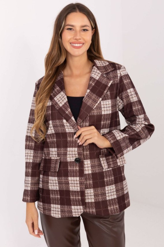 Stylowa marynarka damska w kratę to idealne połączenie elegancji i codziennej wygody. Model o standardowej długości z długimi rękawami świetnie uzupełni zarówno casualowe, jak i bardziej formalne stylizacje. Marynarka posiada wykładane klapy oraz zapięcie na dwa jednorzędowe guziki, co nadaje jej klasyczny, ponadczasowy charakter. Wszyte poduszki na ramionach subtelnie podkreślają sylwetkę i dodają jej eleganckiej struktury. Wnętrze wykończone jest podszewką, dzięki czemu marynarka doskonale się układa i zapewnia komfort noszenia. Wzór w kratę w połączeniu z casualowym stylem sprawia, że ten model sprawdzi się zarówno na co dzień, jak i do pracy. To uniwersalny element garderoby, który podkreśli Twój indywidualny styl.