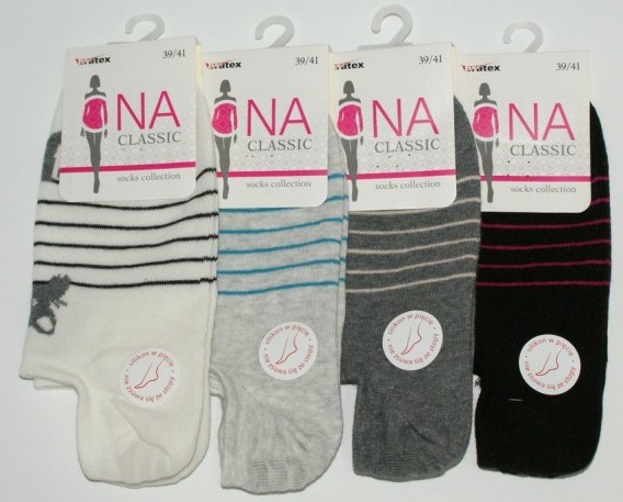 Wzorzyste stopki damskie z silikonem na pięcie zostały wykonane z wysokiej jakości bawełny.
