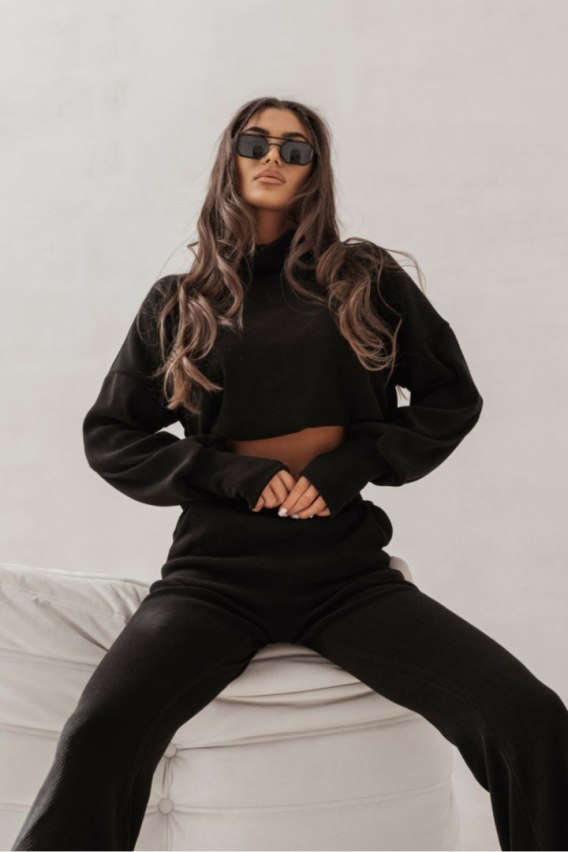 Komplet PRIAH w kolorze czarnym to idealna propozycja dla kobiet ceniących sobie wygodę i elegancję w codziennym ubiorze. Zestaw składa się z bluzy oraz spodni, które doskonale komponują się ze sobą, tworząc harmonijną całość. Dzięki zastosowaniu wysokiej jakości materiałów, komplet zapewnia nie tylko atrakcyjny wygląd, ale także komfort podczas noszenia. Bluza wykonana z 70% wiskozy i 30% poliestru charakteryzuje się miękką teksturą, co wpływa na jej przyjemność noszenia. Długie rękawy sprawią, że bluza idealnie układa się na sylwetce, podkreślając jej atuty. Spodnie w komplecie posiadają elastyczny pas, co zapewnia dodatkowy komfort oraz swobodę ruchów. Komplet PRIAH jest doskonałym wyborem na różnorodne okazje, od codziennych stylizacji po bardziej formalne wyjścia. Możesz nosić go do pracy, na spotkania ze znajomymi czy romantyczne kolacje. Uniwersalny czarny kolor sprawia, że zestaw świetnie komponuje się z różnorodnymi dodatkami oraz obuwiem. Zainwestuj w odzież, która łączy w sobie nowoczesny design z funkcjonalnością. Komplet PRIAH to must-have w szafie każdej modnej kobiety, który podkreśli Twoją indywidualność i styl. Wybierz jakość, komfort i elegancję w jednym!